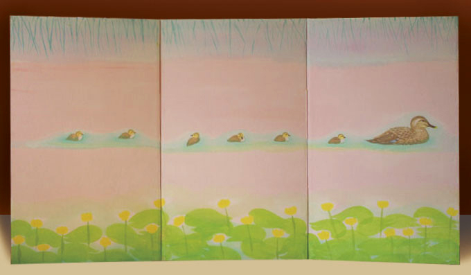 以前、職場体験でお世話になった表具屋さんに教わりながら屏風を仕立てて絵を描きました。